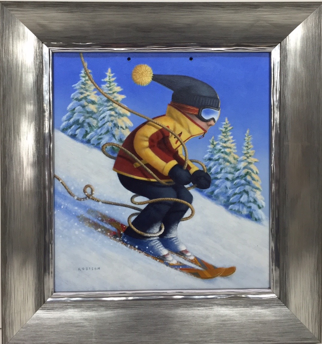 Mark Robinson painting on print plate for Art Access’ “300 Plates” fundraiser; framing donated by Bullocl Frame Co.